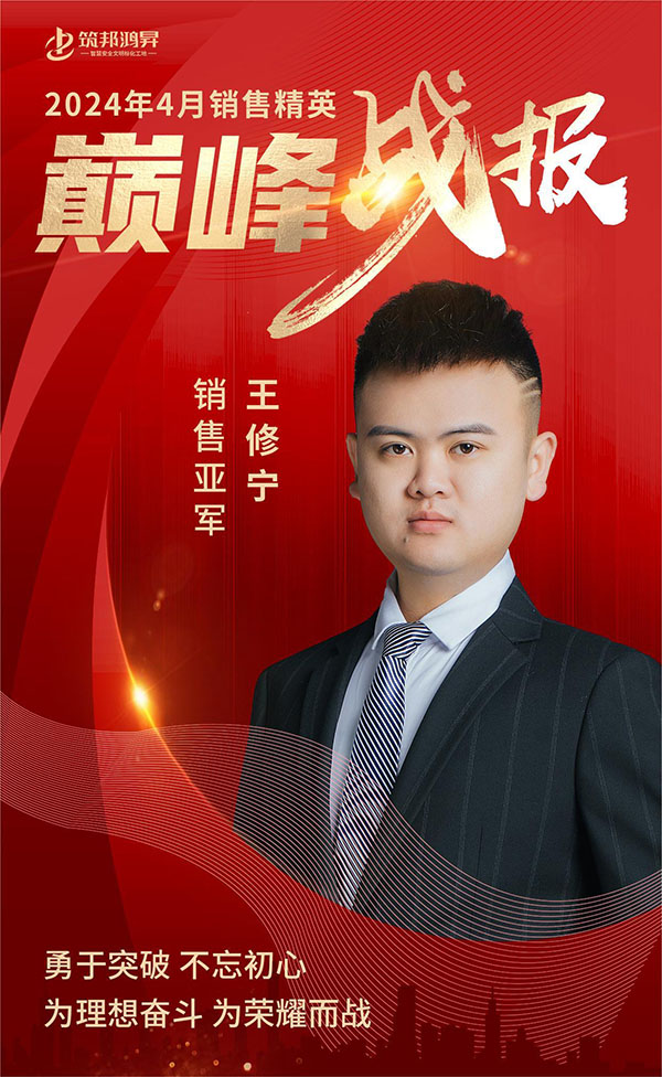 4月份,筑邦鴻昇又迎來了一場銷售的盛宴,我們的銷售團(tuán)隊在過去的4月份再次創(chuàng)造了輝煌,讓我們一同為銷售部精英取得的杰出成績喝彩。值此良機(jī),我們向大家介紹我們銷售部4月銷售業(yè)界的前三甲——冠軍康納輝、亞軍王修寧和季軍康治輝,他們的奮斗和成就展示了我們企業(yè)全心全意服務(wù)客戶的承諾和精神,同時也是我們?nèi)w銷售部成員的榜樣和鼓舞!