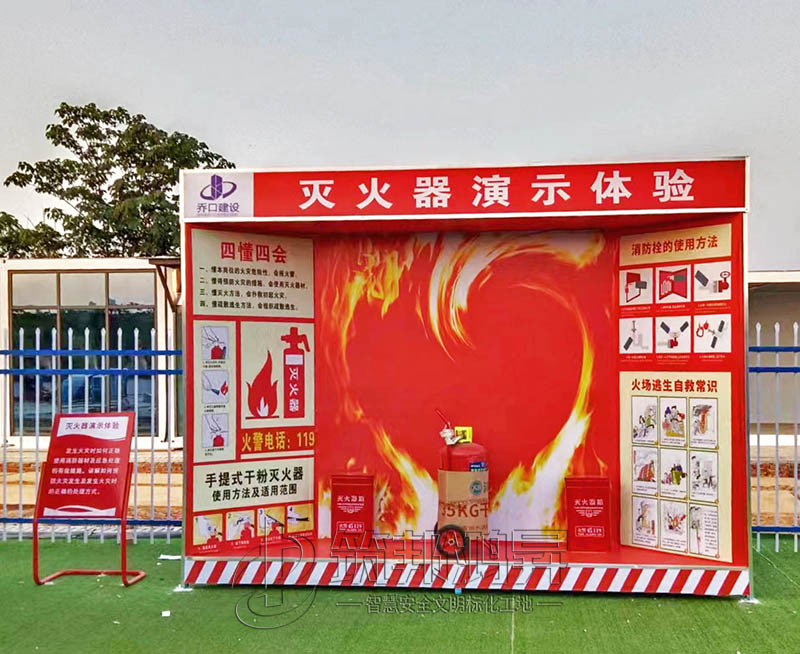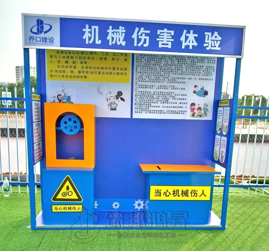 此次合作的工地安全體驗(yàn)區(qū)建設(shè)包括了班前講評臺、爬梯演示體驗(yàn)、洞口墜落體驗(yàn)、消防器材柜、滅火器演示體驗(yàn)等。