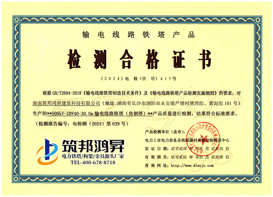 筑邦鴻昇-電力鐵塔檢測合格證書