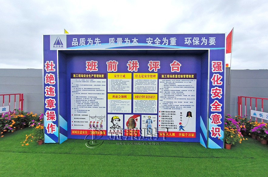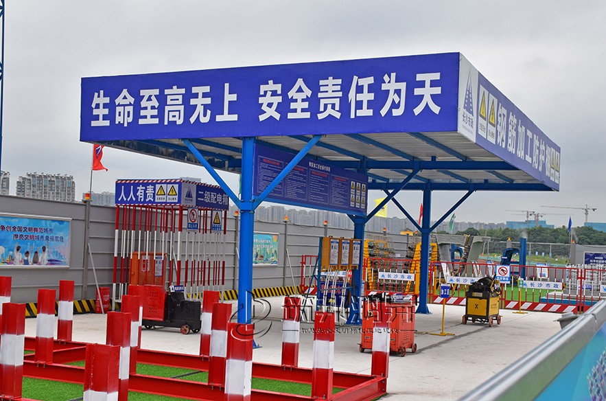 6月21日,2022年長沙市建筑工程質(zhì)量管理和安全生產(chǎn)標(biāo)準(zhǔn)化觀摩會(huì)在長沙市市政工程承辦的靳江河西岸綜合整治工程設(shè)計(jì)施工總承包(EPC)項(xiàng)目舉行。筑邦鴻昇系列文明標(biāo)化產(chǎn)品助力。