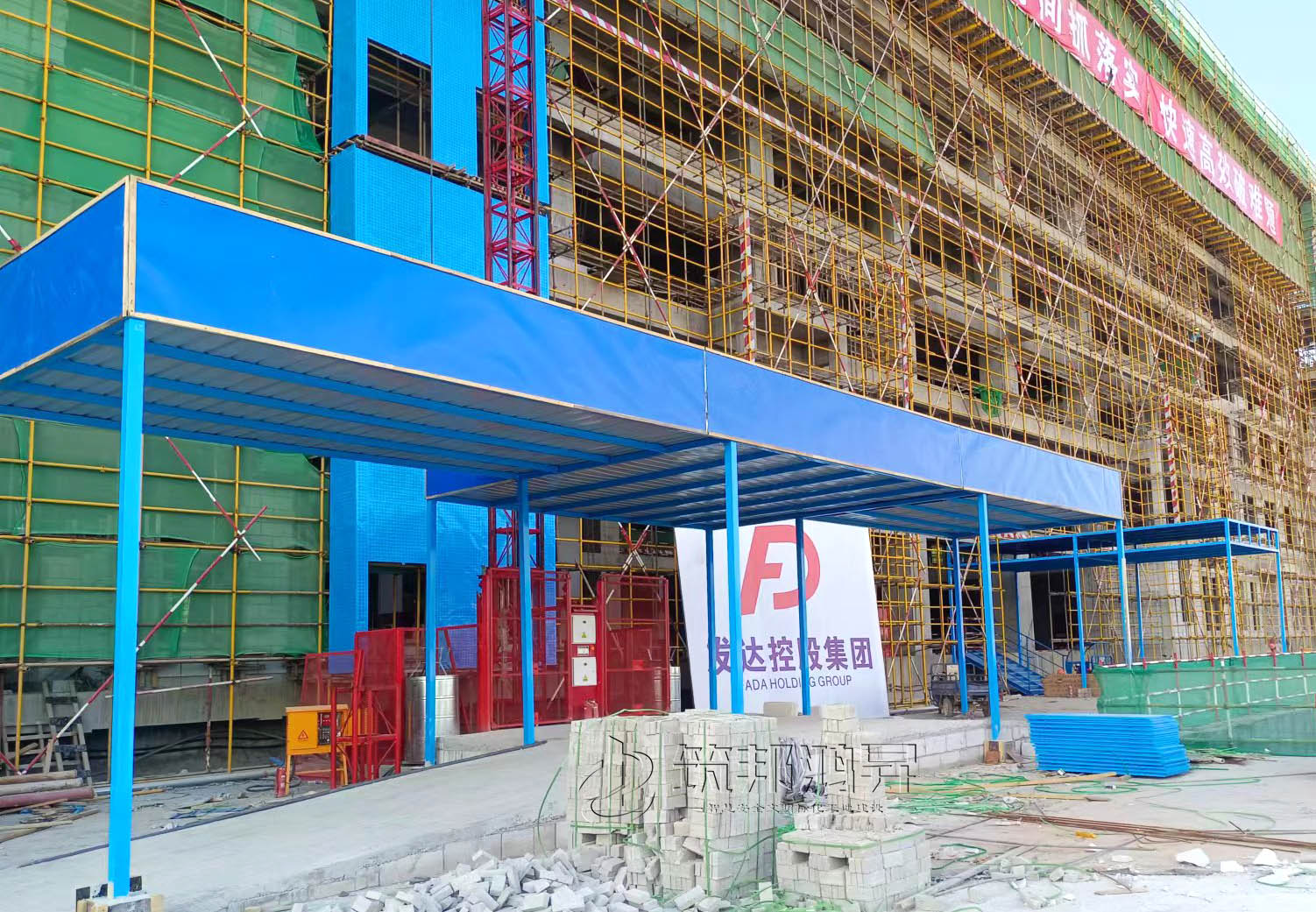 此次合作的安全標化產(chǎn)品還包括了樓層防護門、人貨電梯防護棚等設(shè)備。筑邦安排專車送貨到江西工地,同時安排了專業(yè)人手迅速到工地加班加點完成安裝。