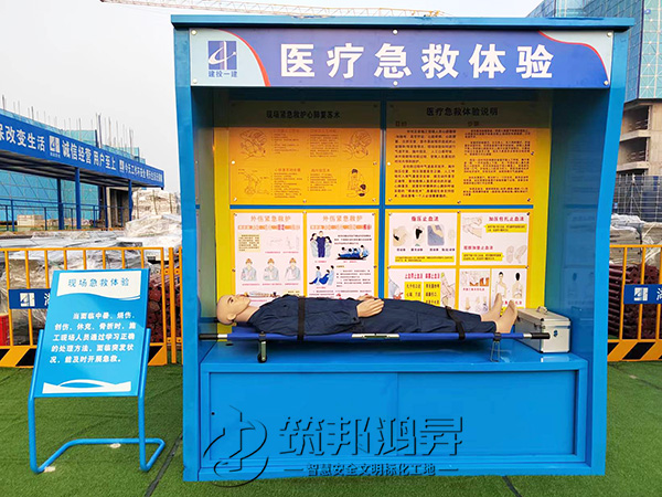 此次合作的安全教育培訓(xùn)體驗(yàn)區(qū)建設(shè)包括了機(jī)械傷害體驗(yàn)、醫(yī)療急救體驗(yàn)、安全帶使用體驗(yàn)、勞保用品展示體驗(yàn)、洞口墜落體驗(yàn)、消防滅火體驗(yàn)、安全帽/鞋撞擊體驗(yàn)等。鈑金款安全體驗(yàn)區(qū)設(shè)備采用全鋼鈑金設(shè)計(jì),美觀醒目。筑邦安排專車送貨到湘潭工地,同時(shí)安排了專業(yè)人手迅速到工地加班加點(diǎn)完成安裝。