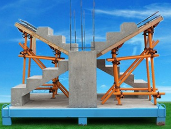 展示工藝:鋼筋混凝土、鋼筋綁扎、支模體系支撐立桿垂直于地面、混凝土成品、梯板鋼筋綁扎、樓梯模板卡槽式支附與加固、梯板1/3處混凝土施工縫留設(shè)等工藝。