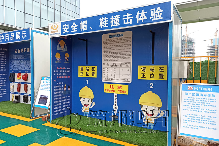 【筑邦鴻昇】實體安全體驗館-安全帽、鞋撞擊體驗將安全帽撞擊體驗設(shè)備和安全鞋撞擊體驗設(shè)備融合在一起,兩者功能通用,更加方便,更加實用,為客戶省錢。